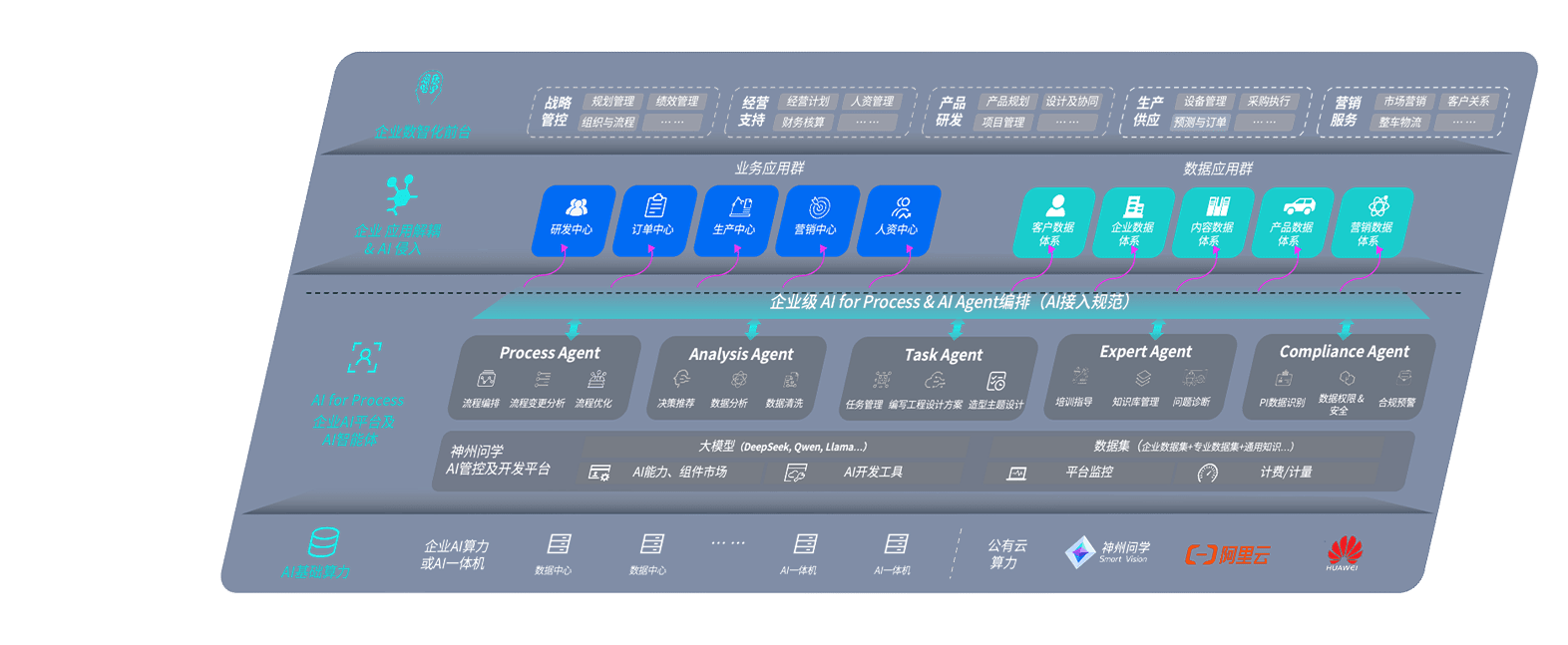 端到端的一站式AI工作空间深度融合了从企业战略规划到日常经营的全流程业务板块,,,,定向解决车企内部领域多、、部门多、、、链条长、、场景碎片化等难题,,,支持车企快速构建以AI为核心的生产力写作体系,,实现任务执行与AI能力的无缝集成与交互